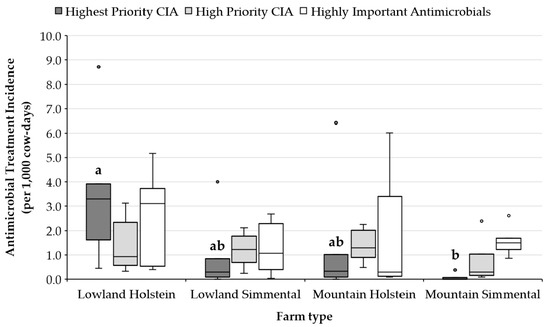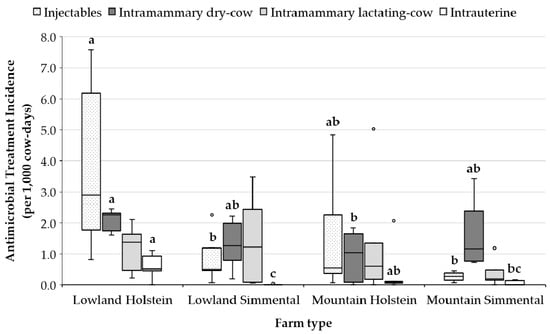 Zuliani, A.; Lora, I.; Brščić, M.; Rossi, A.; Piasentier, E.; Gottardo, F.; Contiero, B.; Bovolenta, S. Do Dairy Farming Systems Differ in Antimicrobial Use? Animals 2020, 10, 47. https://doi.org/10.3390/ani10010047