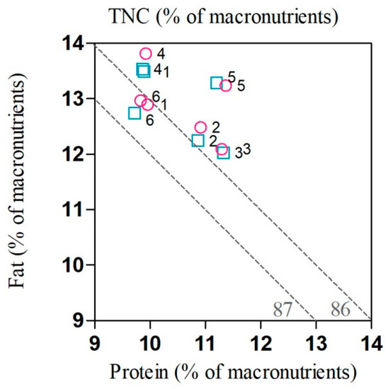 - Raubenheimer, D. The Right-Angled Mixture Triangle. Bull. Ecol. Soc. Am. 2011, 92, 294–297. [Google Scholar] [CrossRef]