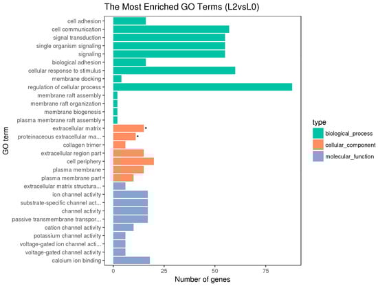 Histogram of GO enrichment of the ovarian DEGs. With “*” as the significantly enriched GO term.