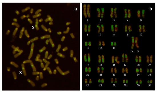 - Moreno-Millán, M.; Demyda, S.E.; Saleno, D.R. Sex Chromosomes Abnormalities in Purebred Spanish Horses with Reproductive Problems: Cases Report. Bullet. UASMV Vet. Med. 2012, 69, 1–7. [Google Scholar]