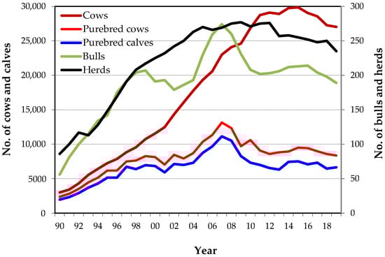 - Carolino, N.; Santos-Silva, F.; Carolino, I.; Borges, A.; Cirnes, M. Indicadores Demográficos da Raça Bovina Autóctone Arouquesa em Portugal. In Anais do XX Simpósio Iberoamericano sobre Conservação e Uso de Recursos Zoogenéticos Locais; Empresa Brasileira de Pesquisa Agropecuária, Ministério da Agricultura, Pecuária e Abastecimento: Corunbá, Brasil, 2020; ISSN 1981-7233. Available online: https://ainfo.cnptia.embrapa.br/digital/bitstream/item/212162/1/-Anais-XX-Simposio-Rec-Zoogeneticos-DOC-163-2020.pdf (accessed on 27 October 2020).