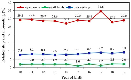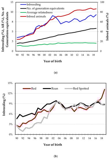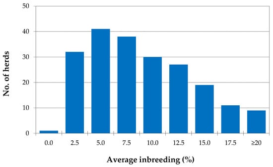 - Cleveland, M.A.; Blackburn, H.D.; Enns, R.M.; Garrick, D.J. Changes in inbreeding of U.S. Herefords during the twentieth century. J. Anim. Sci. 2005, 83, 992–1001. [Google Scholar] [CrossRef] [PubMed]