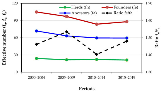 | Breed | Country | L | ni | AR | Fx, % | Fx ≠ 0, % | ΔF/year, % | Ne | fe | fa | fe/fa | Source |