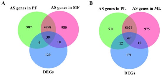3.4. Functional Enrichment Analysis of DE AS Genes