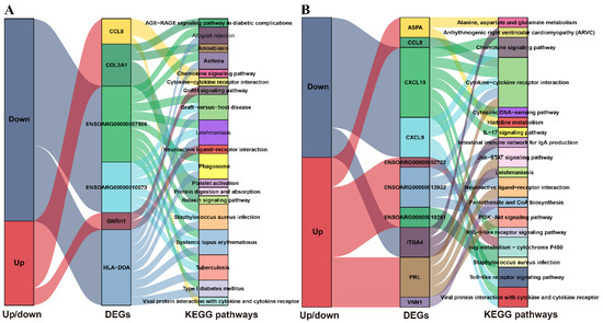 3.5. Interaction Analysis of DE AS Genes with microRNA (miRNA)