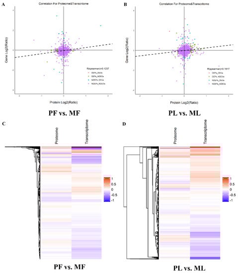 2.6. Correlation Analysis between Proteomics and Transcriptomics