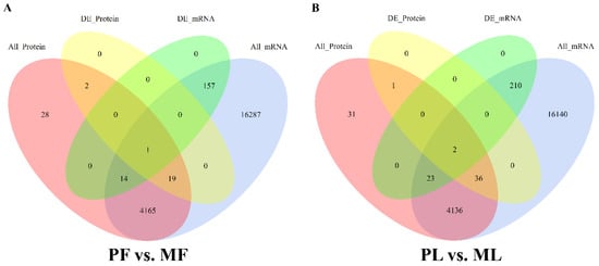 3.7. Correlation Analysis of the Proteomics and Transcriptomics