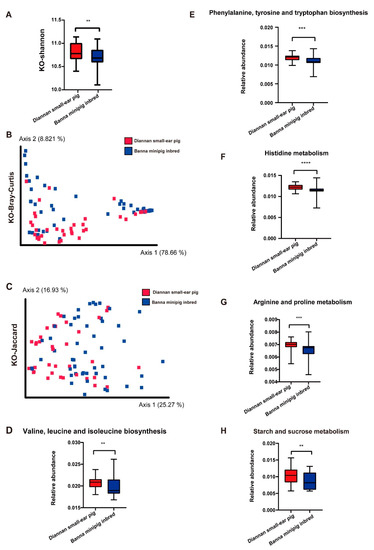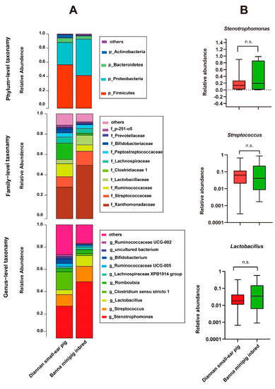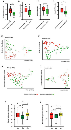 3.3. Differences in Bacterial Communities between Diannan Small-Ear Pig and Banna Minipig Inbred