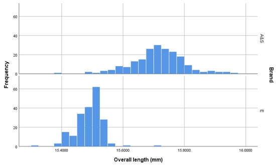 Figure 3) and length, with the AS cartridges demonstrating a longer mean length (AS = 15.717 mm ± 0.0851