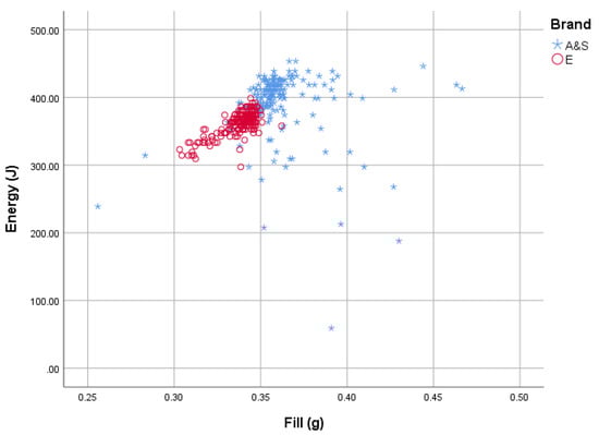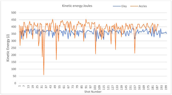 9]. This requirement recognises the importance of the cartridge choice, but also infers an expectation of unform performance of the cartridges. As detailed in the introduction, the manufacturer data sheet for these cartridges quotes an average velocity of 66.7 m/s and a kinetic energy of 544 J. Given the manufacturers’ quoted performance tolerances of 15% for velocity and kinetic energy, the cartridges should produce a velocity within the range of 56.70–73.37 m/s. However, this figure of 15% variation for both parameters is slightly misleading; given that kinetic energy (