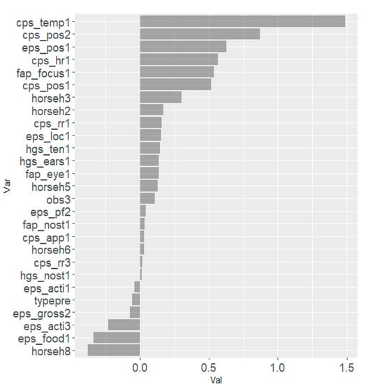 Interestingly, some of the individual horses’ large coefficients in the Lasso regressions (Figure 5), are underlying the importance of individual characteristics when assessing pain. Theoretically, this is not surprising. Since pain is an experience and related to the *personality* of the horse [8], all horses cannot be expected to show the same frequency and intensity in pain behaviors, as is also the case for humans [40]. This adds to the limitations with small sample sizes in pain studies, where larger samples could have compensated for large individual variations.