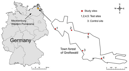 Figure 1. Location of the study sites in the city forest outside the town of Greifswald/Germany.
