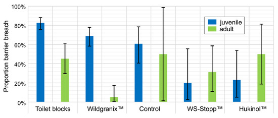 Figure 4. Proportion of barrier breaches with chemical deterrence and 95% confidence intervals.