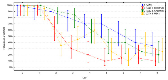 - Constable, P.D. Treatment of Calf Diarrhea: Antimicrobial and Ancillary Treatments. Vet. Clin. N. Am. Food Anim. Pract. 2009, 25, 101–120. [Google Scholar] [CrossRef]