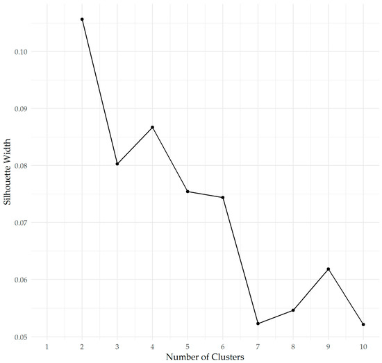 The clustering was checked against an elbow plot using Metroid clustering (PAM algorithm from cluster package [19], again using the Gower distance from the daisy algorithm; see Figure 2).