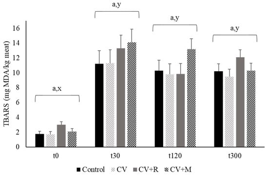 | TBARS, mg MDA/kg meat | Control | CV | CV + R | CV + M | SEM | p-Value |