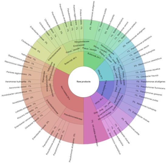 Identified species and family of bacteria in the raw products.