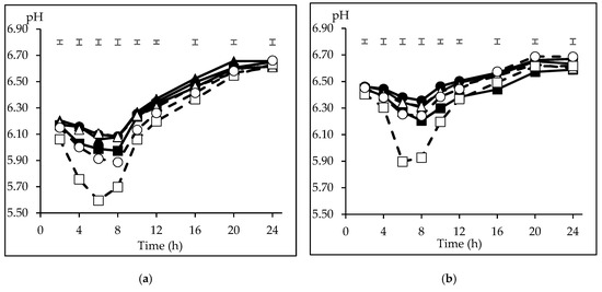 - Amanzougarene, Z.; Fondevila, M. Fitting of pH conditions for the study of concentrate feeds fermentation by the in vitro gas production technique. Anim. Prod. Sci. 2018, 58, 1751–1757. [Google Scholar] [CrossRef]