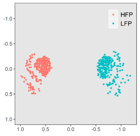 The multidimensional scaling plot can be seen in Figure 1. HFP and LFP lines are clearly separated from each other with both having two crescent-shaped substructures in their clusters.