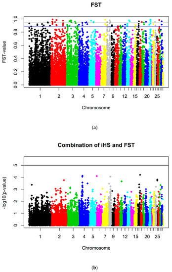 - Qanbari, S.; Simianer, H. Mapping signatures of positive selection in the genome of livestock. Livest. Sci. 2014, 166, 133–143. [Google Scholar] [CrossRef]