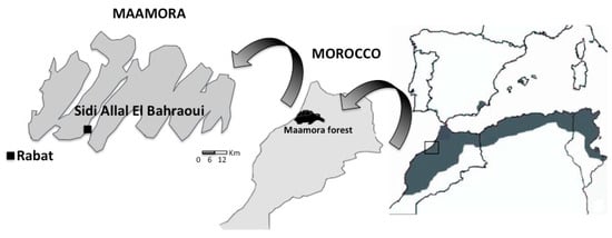 - Fennane, M.; Rejdali, M. The world largest cork oak Maamora forest: Challenges and the way ahead. Fl. Medit. 2015, 25, 277–285. [Google Scholar]