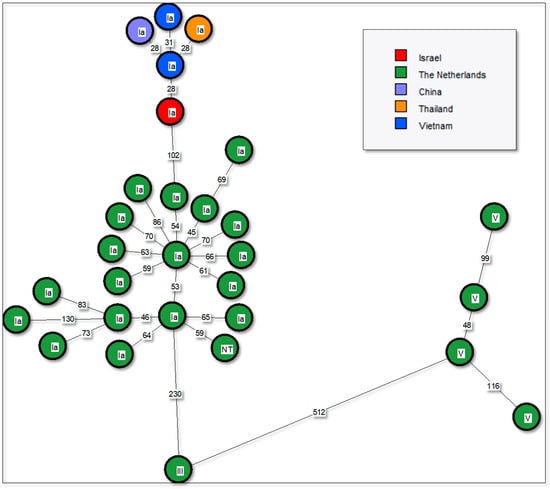 The phylogenetic analysis (Figure 2) indicates genetic clustering among global Ia-ST7. The Israeli strain was more similar to sequences from Asia and was distant from an Ia-ST7-cluster in The Netherlands.