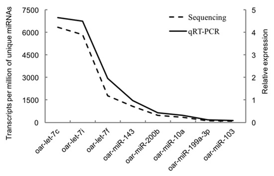 3.5. Validation of Selected miRNAs by Quantitative RT-PCR