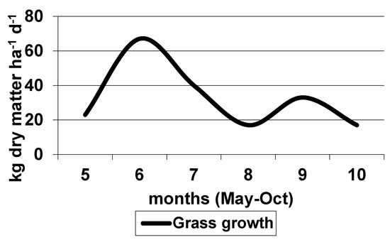 The average growth of pasture grass in Central Italy during the grazing period (modified from [94]).