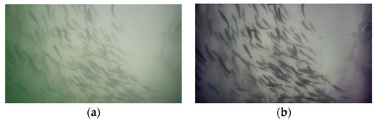 Due to the absorption and scattering of light as it propagates through water, underwater images often suffer from color shifts and reduced contrast. Therefore, to obtain better results, we use color correction and contrast enhancement [29] to improve the underwater images’ quality so that the images can be easily labeled. Inspired by the grey world hypothesis [30], a color correction strategy based on linear transformation is adopted. In 8-bit images, the pixels of the images are stretched to an average of 128 using a piecewise linear transformation. We define S as the input image and calculate the average, maximum, and minimum of the three RGB components. The basic form is as follows: