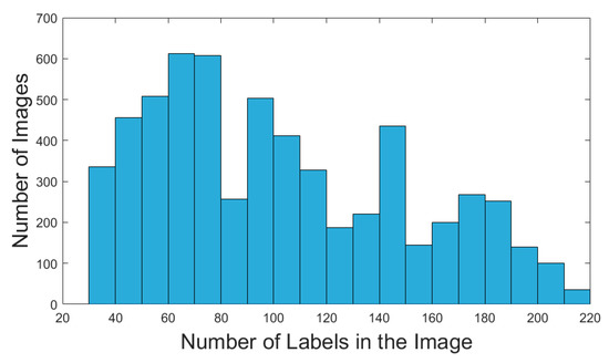 One doctoral student and three postgraduate students labelled 153,513 fish in total for approximately two weeks. The dataset contains a total of 614,052 labeled fish for which we have enhanced the dataset. MATLAB 2016a was used to generate the dataset of fish counting. Figure 5 shows the histogram of the number of fish in the shoal in the dataset. The maximum number of fish in the shoal is 214, the minimum number of fish in the shoal is 30, and the average number of fish in the shoal is 102.3.