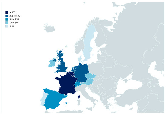 European distribution of atypical myopathy cases notified to the disease surveillance networks from autumn 2006 to November 2019.