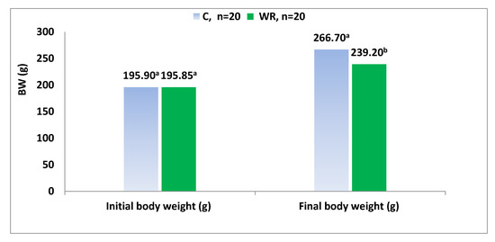 37] showed that food intake was significantly reduced in 50% and 75% water-restricted and water-deprived groups of mice and caused weight losses compared to control groups. Mansano et al. [