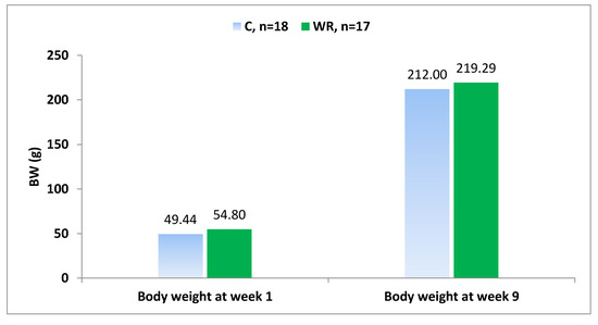 4]. This reduction in body weights of stressed pregnant dams during pregnancy was confirmed by lower body weights of litter at birth than that in control animals. However, the body weights of litter at weaning and their survival index, and the body weight of males (F1) post-weaning at week 1 and 9 were similar between two groups. This can be attributed to the fact that catch up growth of WR to C occurred and the F1 rat offspring recovered from maternal water restriction effects after providing water and feed ad libitum. A study by Mansano et al. [
