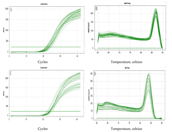 3.3. qRT-PCR Amplification Product Specificity Analysis