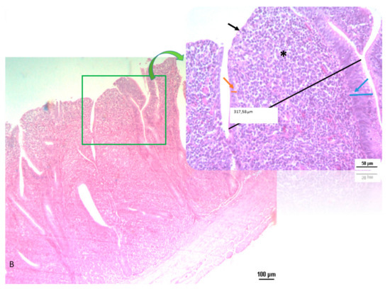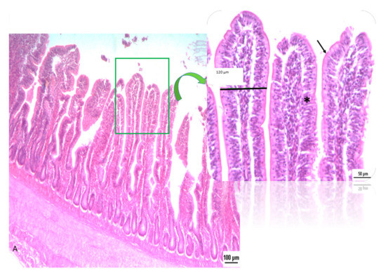 - Bogucka, J.; Ribeiro, D.M.; Boguslawska-Tryk, M.; Dankowiakowska, A.; da Costa, R.P.R.; Bednarczyk, M. Microstructure of the small intestine in broiler chickens fed a diet with probiotic or symbiotic supplementation. J. Anim. Physiol. Anim. Nutr. 2019, 103, 1785–1791. [Google Scholar] [CrossRef]