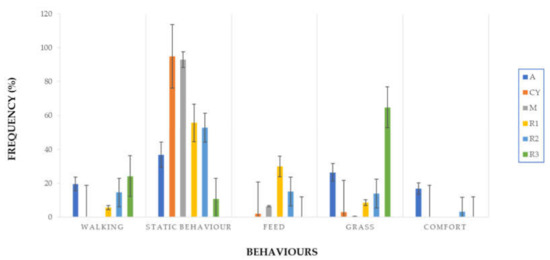 | Static behaviors | Rest: body in line with the ground, with erect head and open eyes and Roost: stay in place standing, no body movement, head erect or relaxed with open eyes |