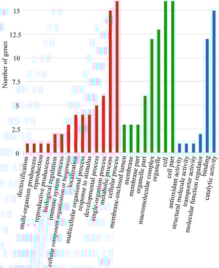 - Conesa, A.; Götz, S.; García-Gómez, J.M.; Terol, J.; Talón, M.; Robles, M. Blast2GO: A universal tool for annotation, visualization and analysis in functional genomics research. Bioinformatics 2005, 21, 3674–3676. [Google Scholar] [CrossRef] [PubMed]