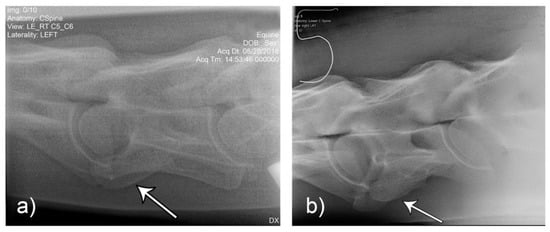 - May-Davis, S. The Occurrence of a Congenital Malformation in the Sixth and Seventh Cervical Vertebrae Predominantly Observed in Thoroughbred Horses. J. Equine Vet. Sci. 2014, 34, 1313–1317. [Google Scholar] [CrossRef]