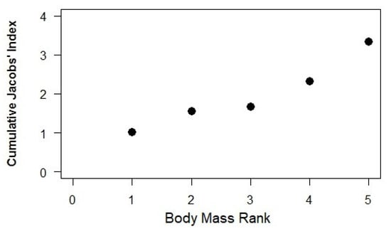 - Jacobs, J. Quantitative measurement of food selection. Oecologia 1974, 14, 413–417. [Google Scholar] [CrossRef] [PubMed]