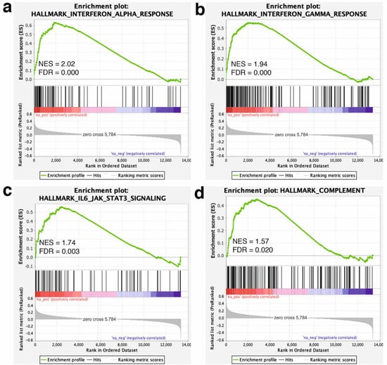 - Subramanian, A.; Tamayo, P.; Mootha, V.K.; Mukherjee, S.; Ebert, B.L.; Gillette, M.A.; Paulovich, A.; Pomeroy, S.L.; Golub, T.R.; Lander, E.S.; et al. Gene set enrichment analysis: A knowledge-based approach for interpreting genome-wide expression profiles. Proc. Natl. Acad. Sci. USA 2005, 102, 15545–15550. [Google Scholar] [CrossRef]
