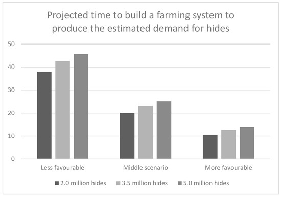 Number of years until the target hides of 2.0, 3.5 and 5.0 million per annum are reached under the three scenarios.