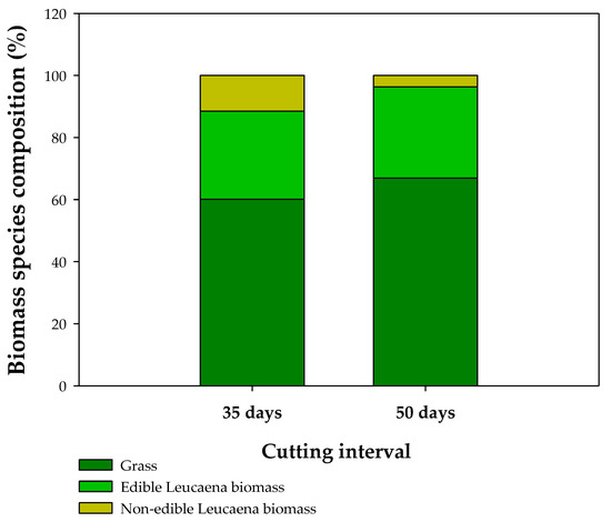 Biomass species composition (%) from a SPS based on L. leucocephala and M. maximus.