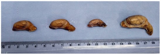 - Bufalari, A.; Maranesi, M.; Marenzoni, M.L.; Mercati, F.; Nannarone, S.; Dall’Aglio, C.; Bellocchi, F.; Zerani, M.; Petrucci, L.; Paoloni, D.; et al. Traditional gonadectomy vs gonadectomy by Ligasure® in grey squirrels (Sciurus carolinensis): Comparing surgical techniques. Reprod. Domest. Anim. 2019, 54 (Suppl. S3), 137. [Google Scholar]