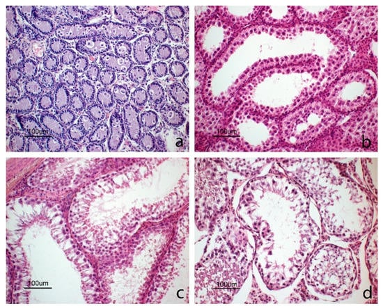 3.3. Morphometric and Histological Evaluation of the Testicles