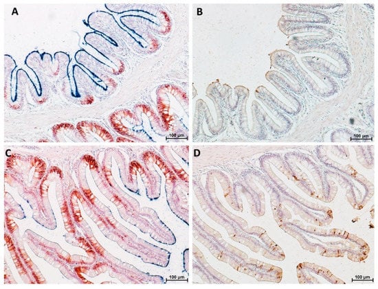 - Kim, J.J.; Khan, W.I. Goblet cells and mucins: Role in innate defense in enteric infections. Pathogens 2013, 2, 55–70. [Google Scholar] [CrossRef] [PubMed]