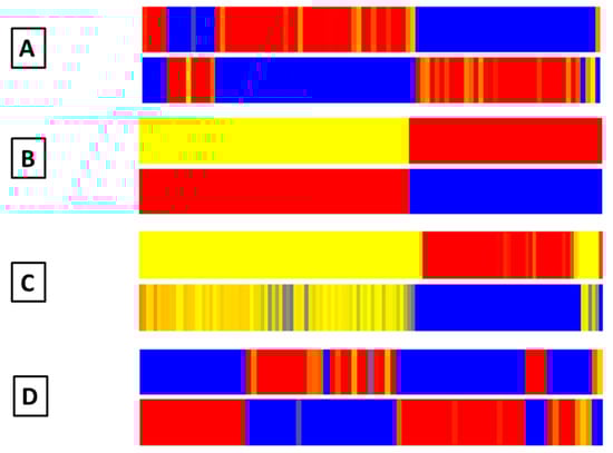 Moreover, hierarchical clustering analysis also showed a clear separation of pregnant and non-pregnant buffaloes. Based on the PCA loadings, a list of metabolites (Tables S1–S4, reported in supplementary materials) whose changes in milk led to the clustering is presented in Figure 2A–D). Clustering for the two groups of buffaloes highlighted the total variances within the PCA data. Differences between pregnant and non-pregnant buffaloes were clearly associated with differences in chemical composition (Figure 2).
