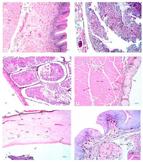 - Eroschenko, V.P. Atlas of Histology with Fuctional Correlations, 8th ed.; Eroschenko, V.P., Ed.; Williams & Wikins: Media, PA, USA, 1996; p. 361. [Google Scholar]