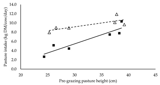 | Pasture intake (kg DM/cow/day) | 0.89 | −6.35 | 0.394 *** | 4.12 | 0.168 * |