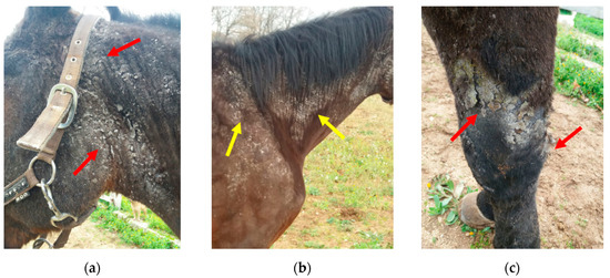 - Lloyd, D.H.; Littlewood, J.D.; Craig, J.M.; Thomsett, L.R. Practical Equine Dermatology, 1st ed.; Wiley-Blackwell: Oxford, UK, 2003. [Google Scholar]