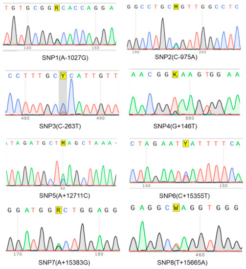 Eight potential single nucleotide polymorphisms (SNPs) were found by Sanger sequencing.